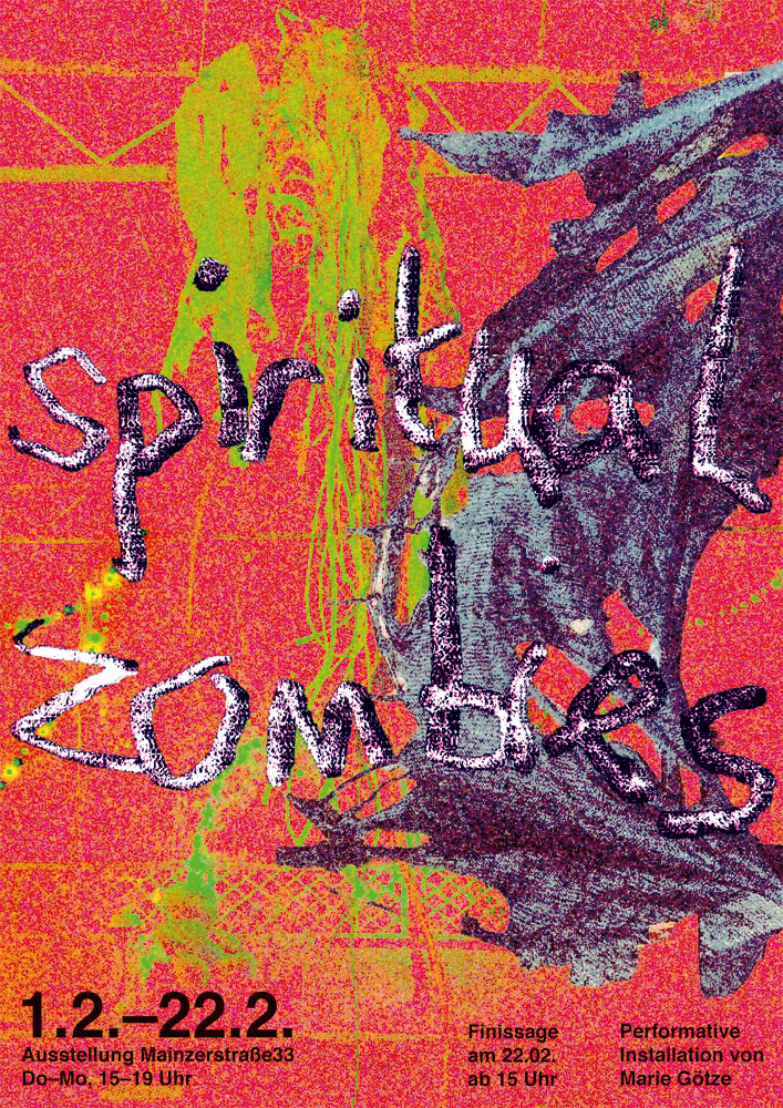 In der Mainzer 33, dem studentisch geführten Projektraum des HBK-AStA läuft bis 22. Februar 2026 die performative Installation »Spiritual Zombies« von Marie Götzte. Die Ausstellung ist Teil des von der Graduiertenförderung der Hochschulen des Saarlandes unterstützen Projektes Underground Networks und schließt an Marie Götztes Meisterstudium an.