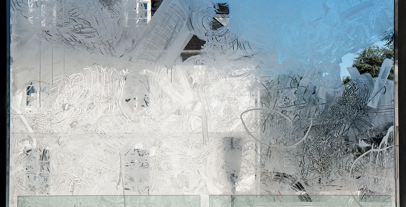 Leonie Mertes studiert Freie Kunst bei bei Prof. Hinsberg an der HBKsaar. Im Projektraum zeigt sie die Arbeit »im Lichten«, 2020, Kreide auf Glas: