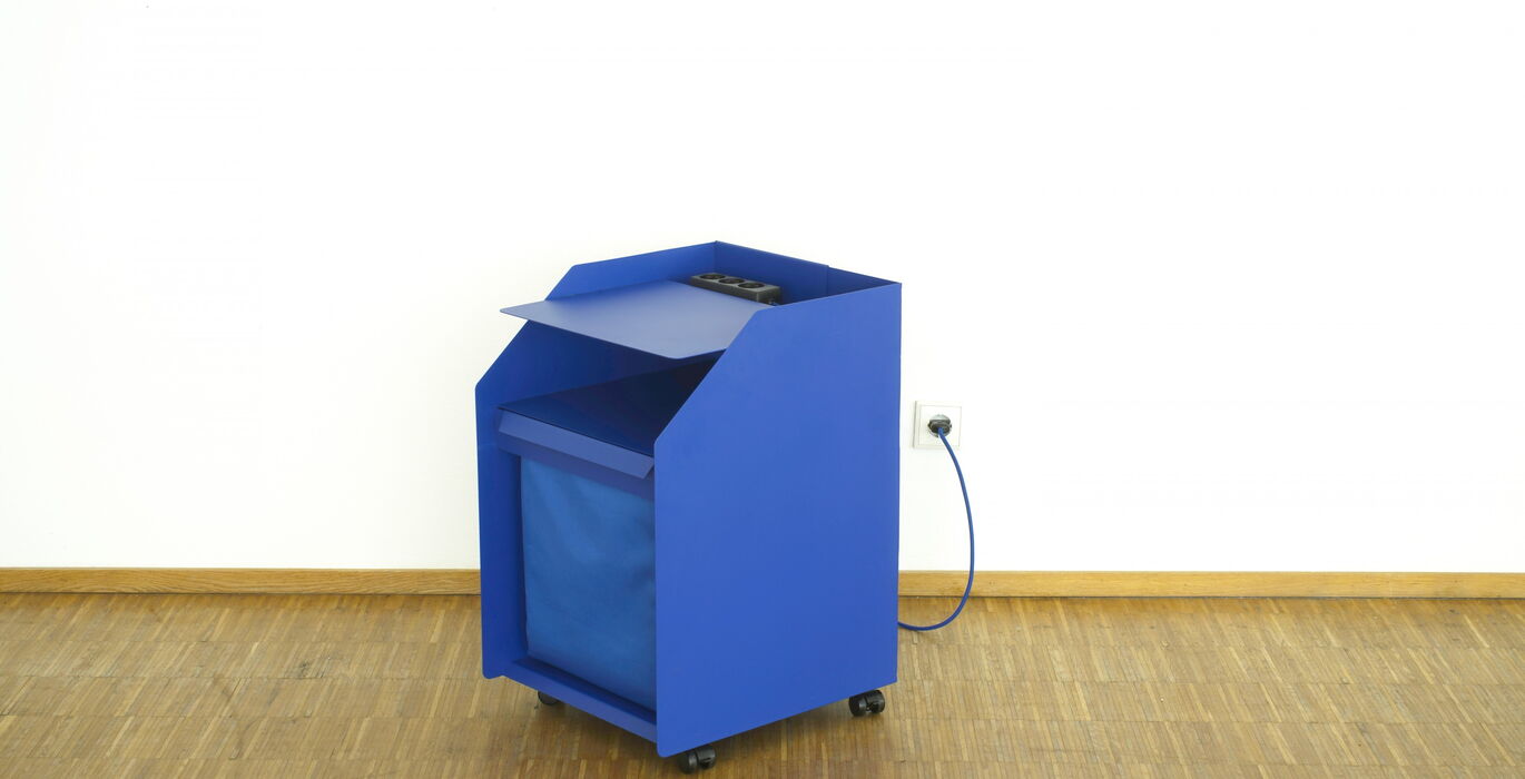 Die HBKsaar ist mit den Ausstellungsstücken »Molo« von Marvin Köth und »Pella« von Raphael Sommer vertreten. Molo ist ein mobiler Stauraum, der zugleich als Schließfach auf Rollen dient. Die schnittfeste und diebstahlsichere Tasche bietet genügend Platz, um jegliche Utensilien zu verschließen. Da sie mit nur wenigen Handgriffen aufgerollt und im Container verstaut werden kann, ist sie zugleich platzsparend. Das darüber befindliche Fach kann als Ablageort für Laptop oder Tablet genutzt werden. Zudem besteht die Möglichkeit, eine Mehrfachsteckdose in der hinteren Box anzubringen.