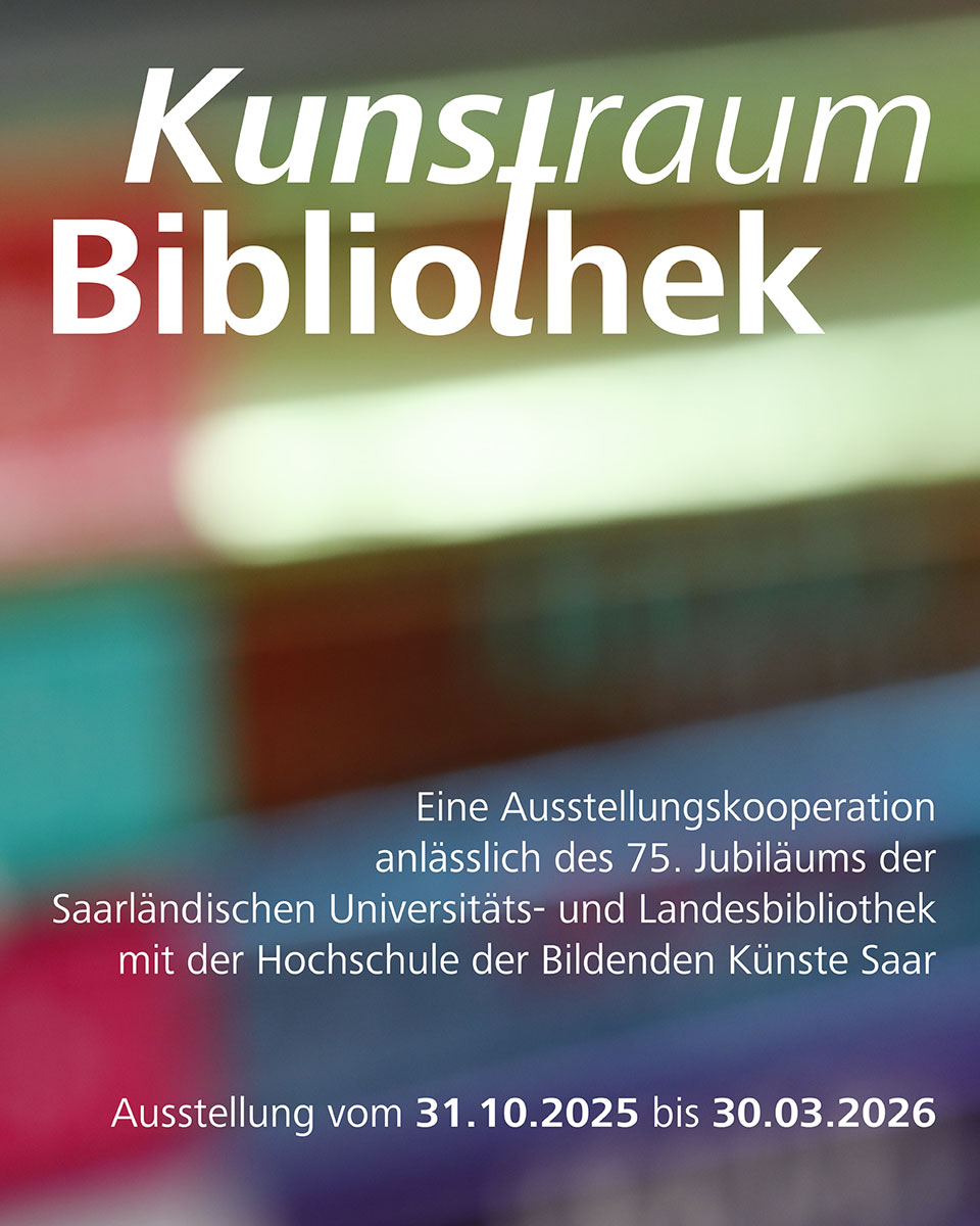 Die Ausstellung Kunstraum Bibliothek wird beim Festakt zum Bibliotheks-Jubiläum (geschlossene Veranstaltung) am 31. Oktober 2025 eröffnet und ist bis zum 30. März 2026 im Ausstellungsraum und anderen Orten in der Bibliothek zu sehen.