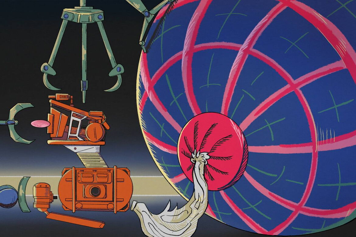 Illustration von HBKsaar-Alumni Jinyu Wang unter Betreuung von Dozent Mert Akbal in der neuen wissenschaftlichen Publikation The Realities of Autonomous Weapons der Bristol University Press