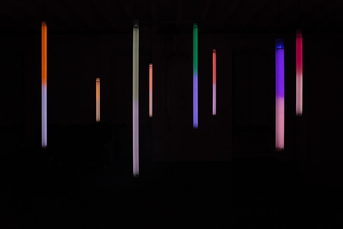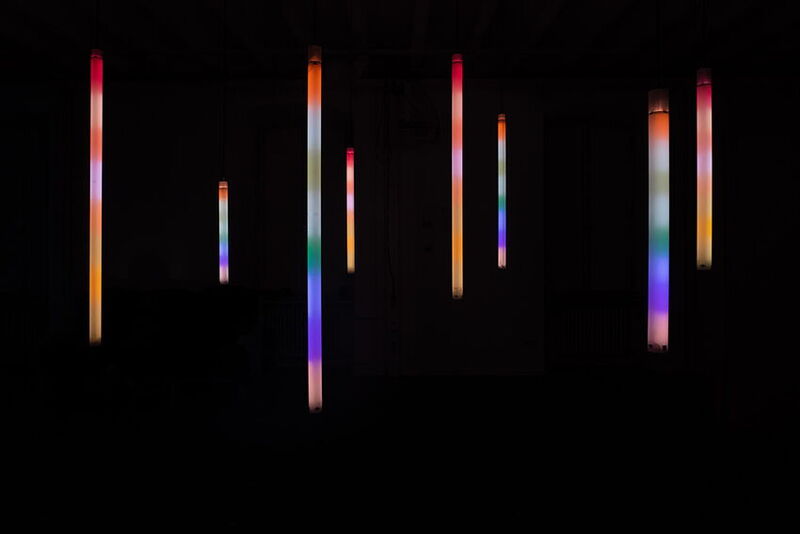 Lux Keri ist eine interaktive Lichtröhreninstallation. Sie lädt den Besucher ein, Farbenwelten auf eigene Faust zu erkunden und selbst Einfluss auf das Licht der Röhren zu nehmen. Damit erweckt sie Spieltrieb und Neugier beim Besucher.