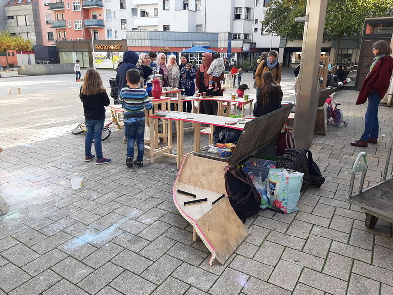 Als soziale, situative, interaktive Plastik, spielerisches Performance-Tool und Reallabor-Experiment im städtischen Raum erforscht das Fliegende S zusammen mit Völklinger*innen die Bedürfnisse der Stadtbewohner*innen und der Stadtlandschaft. Die Stadtmöbel aus Upcycling-Material dienen dabei als Plattform, Stadtbeobachtungspunkt und Verbindungsstelle, um Völklinger*innen zu (spontanen) Interaktionen, stadtarchitektonischen Mitgestaltungen und kommunikativem Austausch einzuladen.