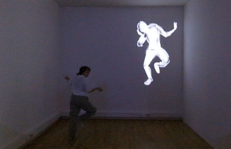 Die Projektion an den drei Wänden, welche einen Teil der Bühne dieses Stückes bilden, schafft eine direkte Interaktion zu mir als Performer. Eine geisterhafte Figur reagiert auf die Performance, bewegt sich jedoch kontrastierend. Die Übertreibung und Gegensätzlichkeit aus Gerts Werken wird in dieser Interaktion zweier Figuren, die auf unterschiedlichen Ebenen agieren, vertieft. Diese Gegensätzlichkeit findet sich auch in Gerts Leben, da sie selbst ihre schlimmsten Erfahrungen in Dinge wie politische Texte oder den Tod selbst als Pantomime verwandelte. Im Ablauf des Stückes lasse ich mich auf diese Seite ihres Lebens ein. Der Ablauf von Valeska Gerts Leben und seine Wirkung auf die Performance in der Gegenwart beleuchtet die Kraft sowie die Schwächen der Tänzerin und mir selbst als Performer.