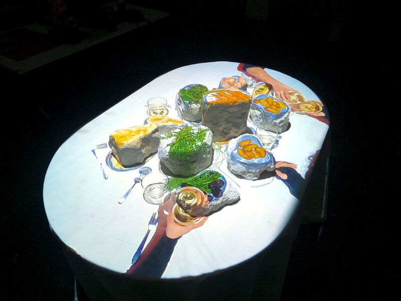 Der Schwerpunkt meiner Bachelorarbeit lag von Anfang an auf den Themen Essen und Rituale. Ich habe Teller, Objekte und eine Stimmung für ein kulinarisches Erlebnis kreiert. Das Ergebnis ist eine Videoinstallation, eine Projektion nach Maß auf dem Esstisch.