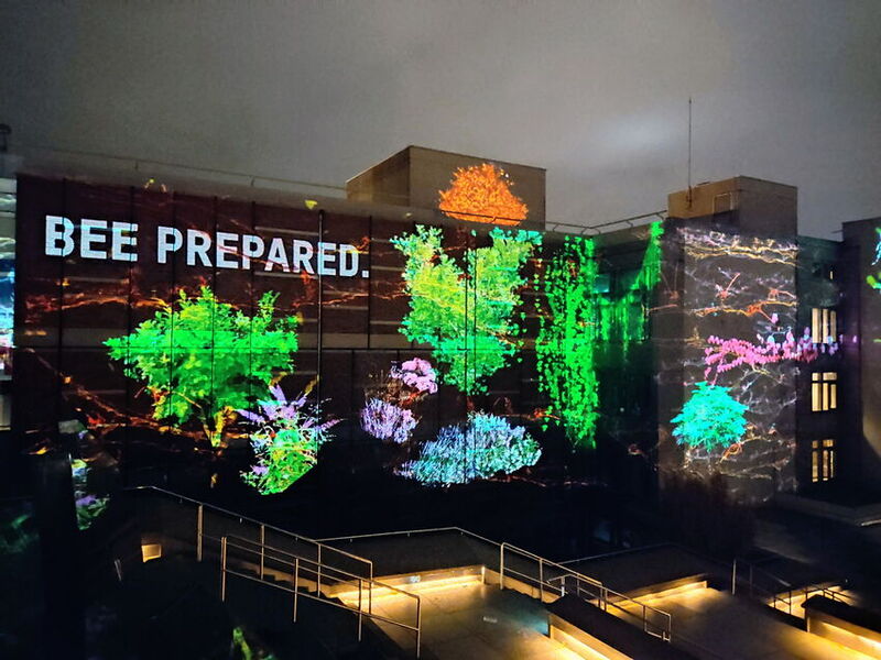Entstanden ist eine Reihe überzeugender Konzepte und Entwürfe, aus der eine unabhängige Fachjury die herausragenden multimedialen Arbeiten Bee Pre­pared von ­Frederick Staut sowie I can see you von Dumei Lu und Wenjia Wang für die Umsetzung vor Ort auswählte. Unter­stützt von Oliver Braese, Jiaqiang Guo und einem Expert*innen­team wurden die Arbeiten dann im Rahmen des Utopie Kulturforum vom 28. Oktober bis 21. November 2021 als Fassadenprojektionen am Berliner Kunstgewerbe­museum und am Kulturforum Berlin gezeigt.