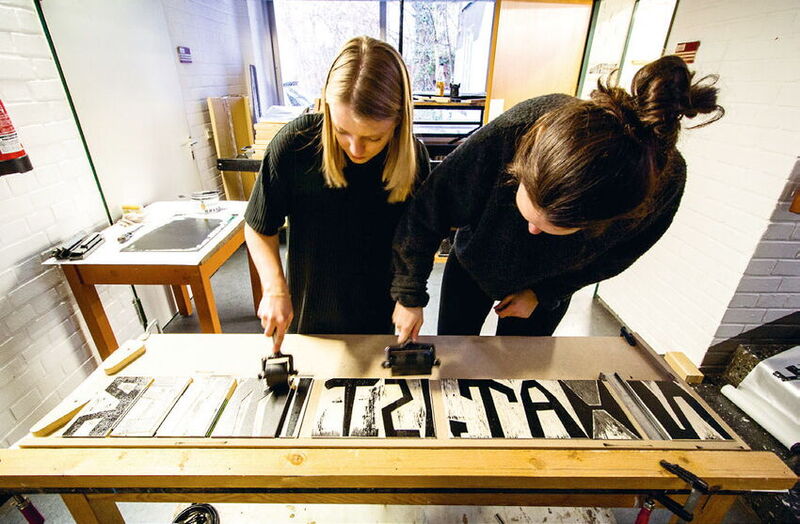 Expressionistische Schrift/ Monsieur Masereel, Einfärben der Holzbuchstaben