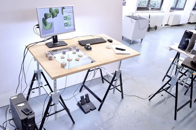 So ist es mit der Kinect möglich, den ganzen Körper als 3D-Werkzeug zu benutzen. Mit dem 'Reactable for Rhino' ist eine Benutzeroberfläche entstanden, die es mehreren Designern gleichzeitig erlaubt, sehr intuitiv an 3-dimensionalen Körpern zu arbeiten. Alle erforschten Eingabemethoden werden im 'Digitalen Produktionszentrum' für Entwurfsprozesse angewandt sollen nach und nach ein fester Bestandteil der Freiformmodellierung an der HBKsaar werden.