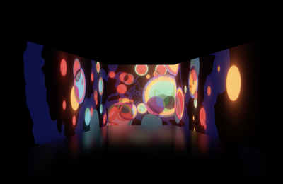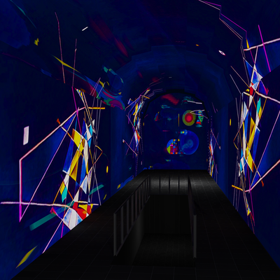 Das exakt auf die bestehende Architektur abgestimmte Projektionsmapping ist dynamisch, das heißt, es schafft nicht nur einen faszinierenden immersiven Erfahrungsraum, in den die Besucher:innen eintauchen, sondern setzt Impulse für ihre Bewegung im Raum.