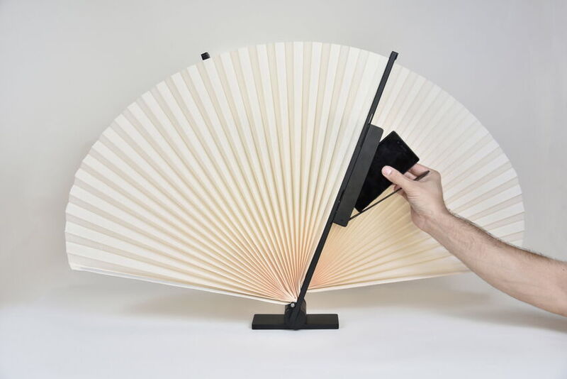 Doch das Smartphone trifft keine Schuld. Wir sind es, die sich entscheiden müssen. Und genau dort setzt Ōgi an. Ōgi ist ein aus zwei Fächerhälften bestehender Tischsichtschutz für den Gastronomiebereich. Der zunächst geöffnete Fächer bietet uns und unserem Gegenüber die Möglichkeit für sich zu sein und die digitale Kommunikation mit all seinen Vorteilen auszukosten, aber auch sich der zwischenmenschlichen, analogen Kommunikation voll und ganz hinzugeben und mithilfe unseres Smartphones die Sichtbarriere, die Kommunikationsbarriere zu überwinden und den Fächer zusammenzufalten. Das eingelegte Smartphone hat dabei keinen Empfang und wird uns nicht belästigen.