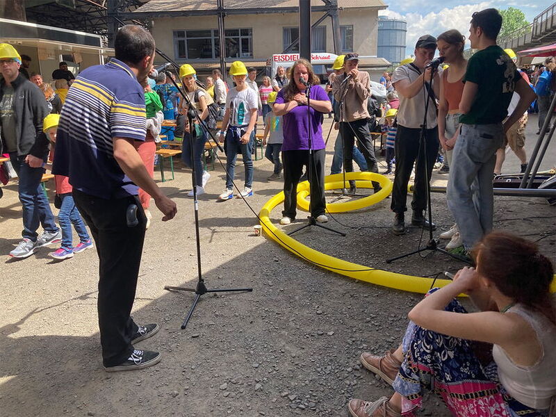 Geschichte anders schreiben: Zum 150-jährigen Jubiläum des Eisenwerks Völklinger Hütte bildete sich aus dem spekulativen Nomad*innen-Umfeld der HBKsaar rrrrrrröCHlingsrrröCHelChor. Der Name der Gründungsfamilie Röchling, zu der auch Hermann Röchling gehört, der an der Seite Adolf Hitlers stand und mit Saar Röchling Wehrwirtschaftsführer und führender Rüstungsproduzent der NS-Zeit war, steht in Verbindung mit dem Elend zahlreicher Zwangsarbeiter*innen.
