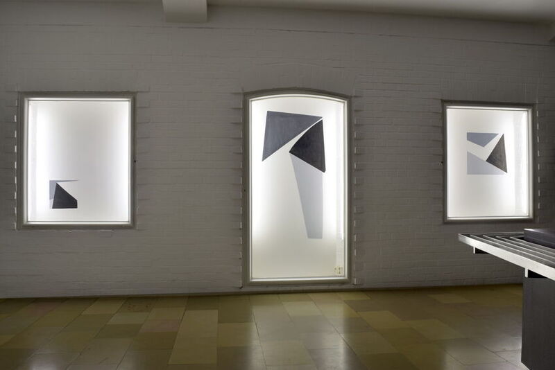 Schatten- und Raumsituationen aus der Mensa und dem sie umgebenden Durchgangsraum wurden zeichnerisch festgehalten. Anschließend wurden diese vergrößert an die Rückwände der Schaukästen gemalt. Beim Betrachter beginnt eine Suche nach den abgebildeten Details innerhalb des Raumes in dem er sich befindet.