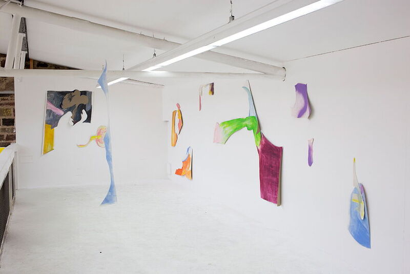 Meine Arbeiten sind keine gesamtheitlichen Malereien, die eckig eingerahmt werden sollen. Jedes Bildelement bringt seinen eigenen Zustand und seine eigene Geschichte mit sich. Deshalb schaue ich mir den Raum vor Ort an, entwickle eine passende Geschichte, die zum Raum passt, und überlege, wie ich die einzelnen Bruchstücke platzieren kann. Der Installationsprozess ist dabei genau derselbe wie der Malprozess.
