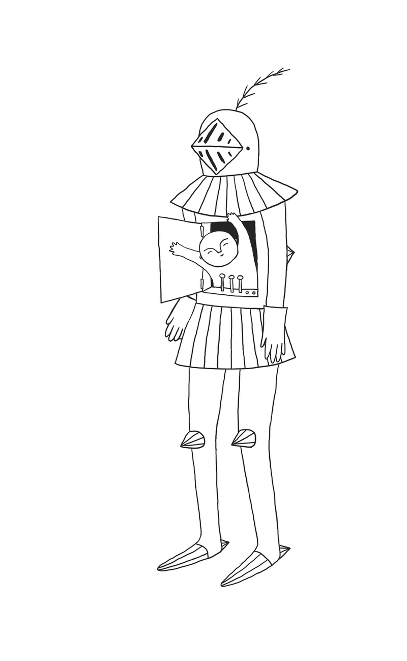 Ich habe in dieser Arbeit eine Prämisse aufgestellt: in der gezeigten Welt gibt es keine Schwerkraft. Die Menschen müssen Ritterrüstungen tragen um am Boden zu bleiben und treten somit in eine Abhängigkeit. Es besteht also die ständige, eventuell tödliche Gefahr der Schwerelosigkeit, die gleichzeitig auch Leichtigkeit verkörpert. Mich hat die Ambivalenz zwischen der Sehnsucht nach Leichtigkeit und der Angst vor Haltlosigkeit beschäftigt.