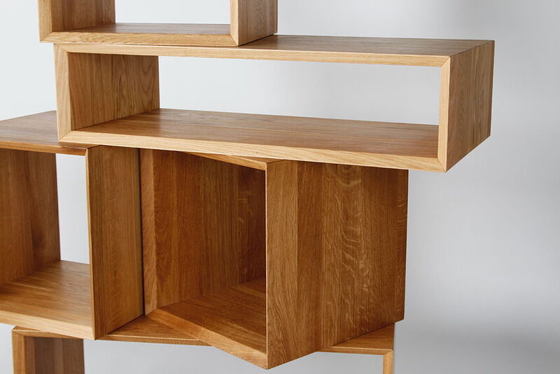 The arrangement possibilities of the four surfaces of each unit allow the modules to be easily and flexibly combined both on top of and next to each other. The inward-facing bevels of the edges give the shelf a simple and elegant shape. The spacers made of cork oak allow air to circulate through the elements, giving the system a sense of lightness without damaging the oak surface with technical connectors. Additionally, the cork discs provide slip resistance and compensate for any unevenness in the floor.