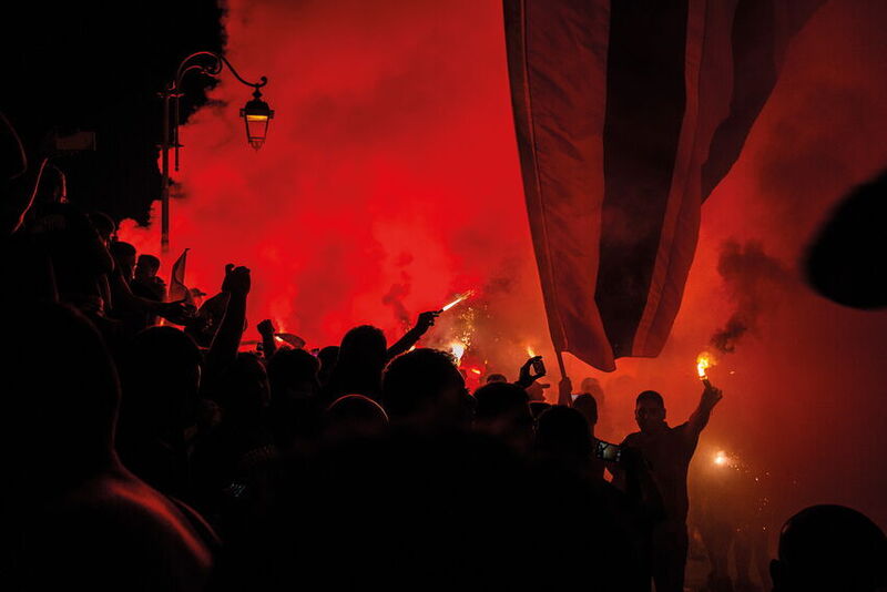 Im vergangen Jahr verweilte ich dann, gemeinsam mit meinem Freund und Übersetzer Bob, während zweier Aufenthalte sechs Wochen am Golf von Tarant. Mein Ziel war es, ein fotografisches Porträt der Stadt einzufangen. Wir besuchten drei Fußballspiele - darunter ein Derby gegen den Erzfeind Lecce, das fast 20 Jahre nicht mehr stattgefunden hatte. Wir wurden Zeugen, wie der gesamte Ort durch den Aufstieg seines Fußballvereins im Ausnahmezustand versank. Giova lud uns zu den Gruppentreffen der Ultrapaz ein. Ich fuhr das Auto in dem wir angereist waren zu Schrott. Bob wurde in der Altstadt mit einem Messer am Hals bedroht. Wir schlossen die Bekanntschaft mit Drogenhändlern und freundeten uns mit ihnen an. Wir schlugen uns mehr als einmal die Bäuche bis zum Zerbersten voll. Ich begleitete den Fischer Manuele beim Muschelfang. Wir wurden von den Carabinieri schikaniert. Nicht selten machten wir die Nacht zum Tag. Wir genossen das Meer und unternahmen Ausflüge. Man erzählte uns Geschichten über die gewalttätige Vergangenheit der Stadt. Wir lauschten den Legenden über vergangene Reibereien mit den Bullen und den verfeindeten Fangruppen. Wir lernten Männer kennen, die fest an die Geschichte der tarantinischen Ultrabewegung gekettet sind. Wir beschlossen zurückkehren.