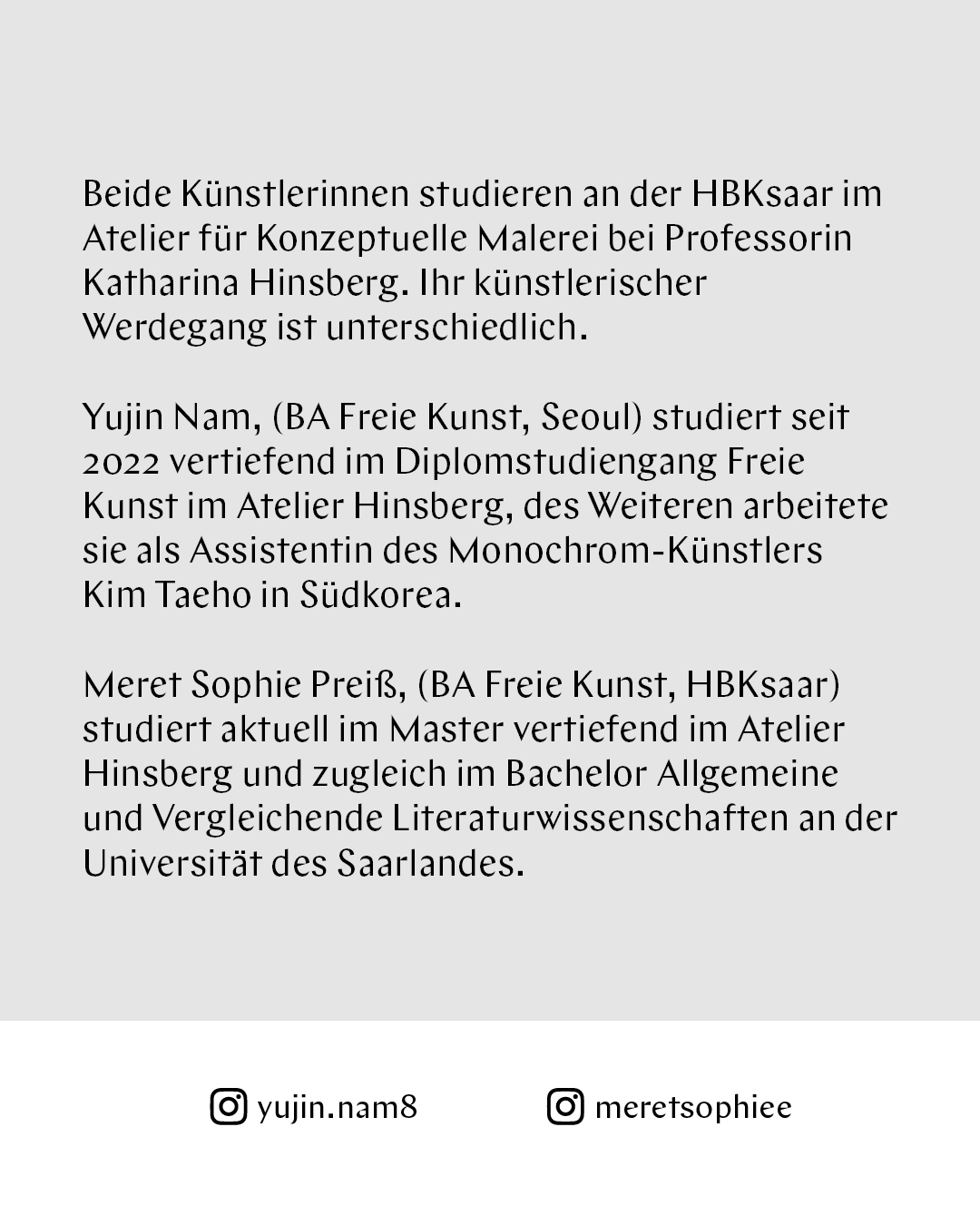 Ausstellungsreihe »Zeig Dich« im Atelier Altes Thonet: Präsentation »berühren« von Meret Preiß und Yujin Nam