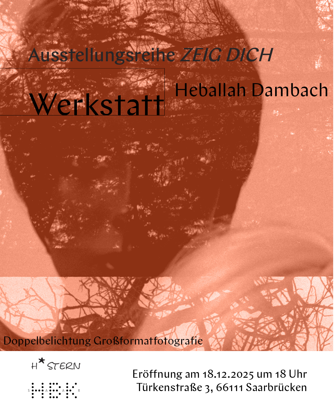 Die zweite Position in der ZEIG DICH Ausstellungsreihe präsentiert die Meisterstudierende Heballah Dambach (Dipl. FK HBKsaar), wobei sie die Ausstellung als Atelier zu einer offenen Werkstatt transformiert. Der Produktionsprozess wird Teil der Präsentation, sodass sich das Verhältnis zwischen Werk, Raum und Zuschauerin neu konfiguriert. Das Publikum begegnet der Malerei im Zustand des Entstehens und erhält Einblick in eine Praxis, die auf prozessuale Offenheit sowie die Sichtbarmachung innerer Impulse ausgerichtet ist.